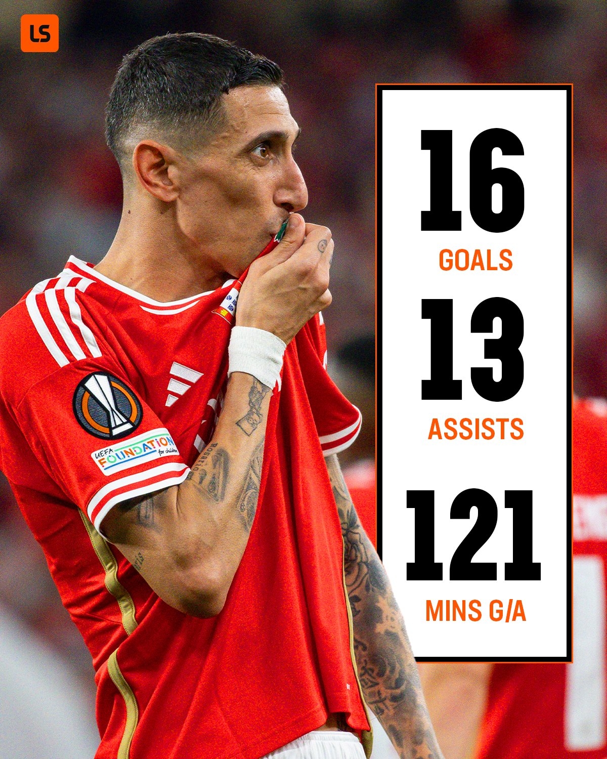 36歲的迪馬利亞本賽季為本菲卡打了43場比賽,攻入16球,助攻13次,幫助本菲卡進入歐羅巴聯(lián)賽8強,葡萄牙超級聯(lián)賽排名第二,落后葡萄牙體育4分。